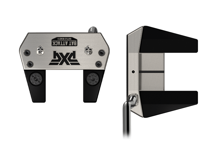 The Bat Attack presents long contrasting weighted heel-toe wings designed for easy alignment to the target. This modified mallet offers the MOI and center of gravity benefits of a mallet style putter in a visually smaller package to inspire confidence on the green.